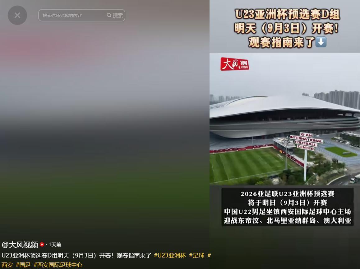 参考信源:大风视频——《U23亚洲杯预选赛D组明天(9月3日)开赛!观赛指南来了》2025-09-02