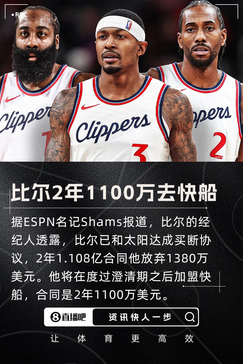 Shams Charania表示,比尔和快船达成2年1100万美元的合同,第二年球员选项。